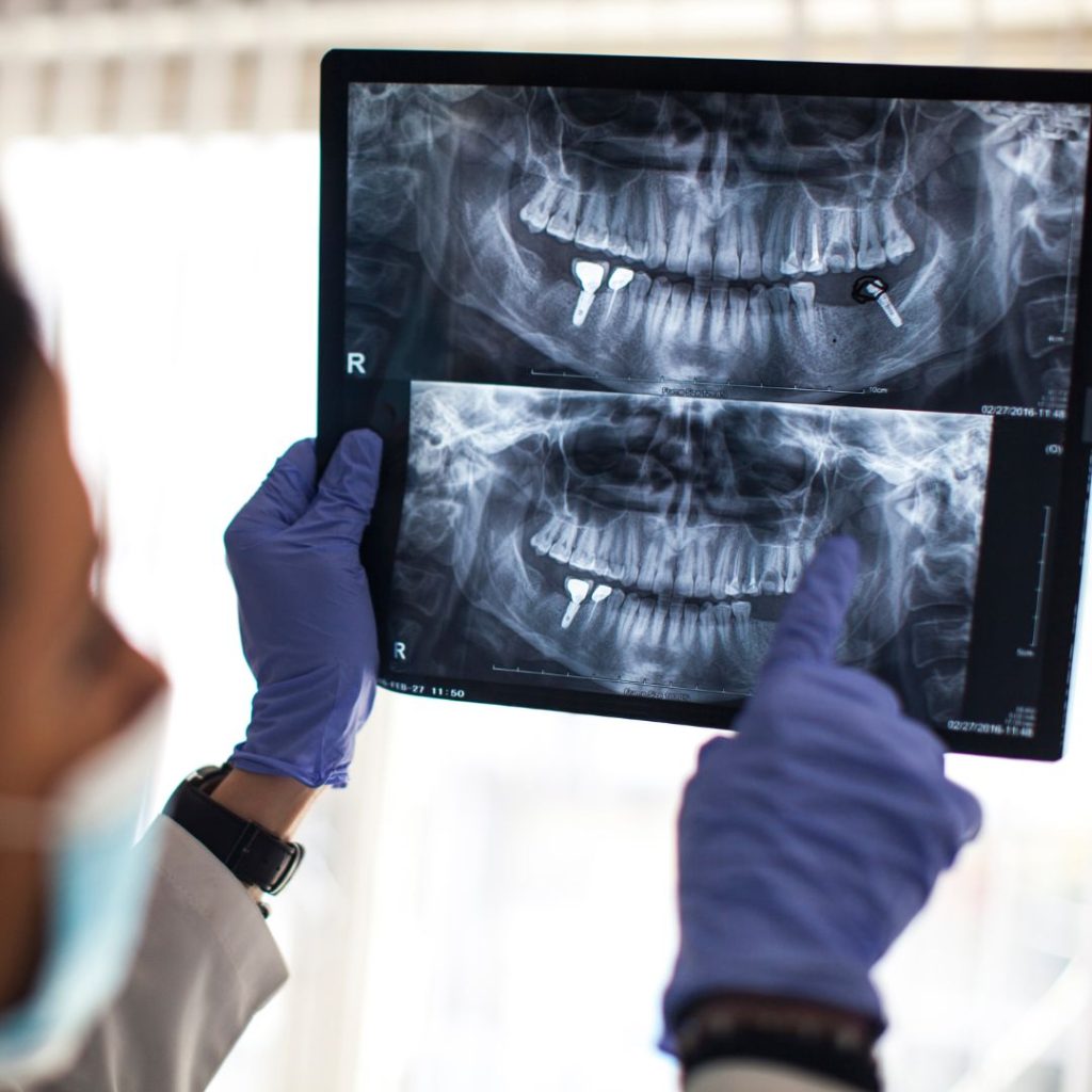 - Dental implant surgery can lead to nerve damage. Your dentist should take X-rays to locate the nerves in your mouth.
